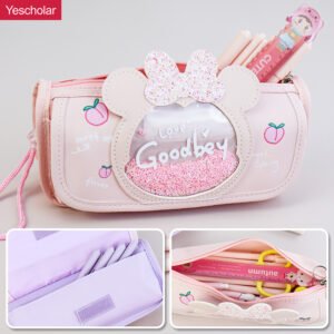 Quicksand cartoon pencil case, quicksand design, three-layer large capacity, waterproof material. Two-layer double zipper, can store about 70 pens, cartoon quicksand design, fashionable and beautiful, simple handle design, more convenient to carry out, waterproof and fall-resistant material, thick fabric is strong and wear-resistant, metal ring chain, zipper Smooth and not stuck, braided hand rope, more convenient to carry when going out.