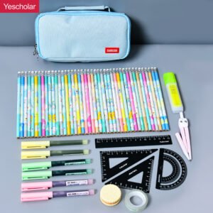 The large-capacity portable pencil case can hold about 50 pens + others. The built-in mesh bag can hold student cards, meal cards, etc. The Okura can hold about 50 pens, and the pen insert can hold 6 pens. It is easy to carry and store, and a four-piece set of rulers can be placed on the back.