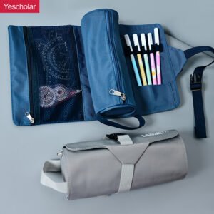 Detachable cylindrical pencil case, can hold about 50 pens + others, the large mesh bag can hold stationery such as rulers, the pen insert can hold 5 pens, and the detachable warehouse can hold more than 40 pens. Large-capacity detachable design, the pencil case can be used alone, the smooth zipper does not get stuck, the pen insert is designed with exquisite wiring, the hand-held design is convenient to carry, the button design is convenient to open and close, the cylinder can stand up the pencil case, and the pencil case can be carried by hand.