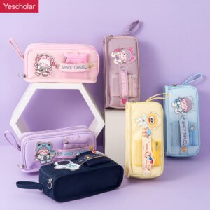 Cute and large-capacity canvas pencil case, one bag to solve all stationery, 3-layer large-capacity design, can hold 80 pens + 20CM ruler, no need to worry about more stationery, no messy stationery, reasonable layering, orderly storage, large storage Position, mesh bag position, front position, permeable mesh bag, can accommodate small items such as rubber and change, high-quality zipper, smooth opening and closing, smooth wiring, fine workmanship.