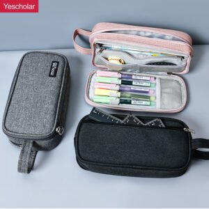 Portable large-capacity pencil case, can hold about 60 pens + others, the large warehouse holds about 30 pens, the cloth bag can hold a four-piece set of rulers, the insert pocket can hold 5 pens, and the mesh bag can hold small stationery. The zipper is smooth and not stuck, the back pocket can hold a set of rulers, and the precision car lines are durable and beautiful.